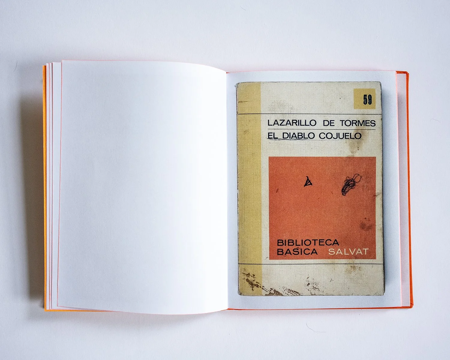 In Orange Monochrome / Monocromo Naranja, Luis Molina-Pantin transforms forty covers from Salvat’s Biblioteca Básica series—each marked by a signature orange square—into a thought-provoking artist’s book. Using secondhand copies bearing signs of wear like moisture stains and scuffs, Molina-Pantin reinterprets these mass-produced, low-cost books as artistic objects, capturing the passage of time through their imperfections.